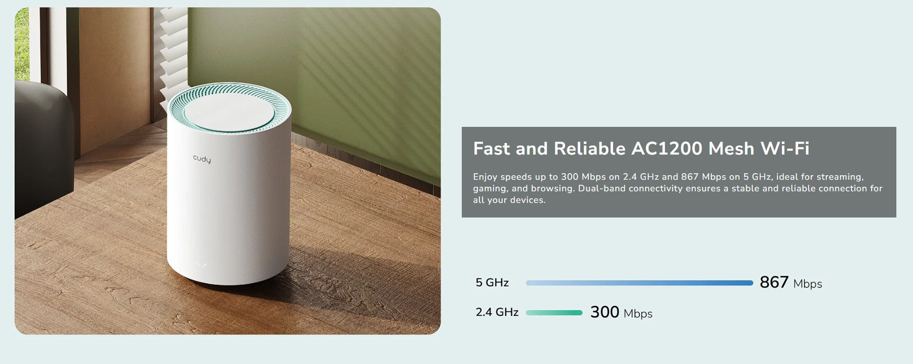 - 867 Mbps + 300 Mbps Wi-Fi 1